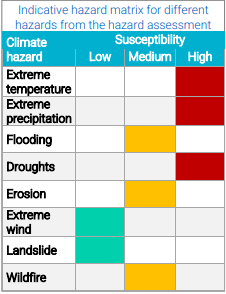 Evaluating exposure and risk from multiple hazards including floods, extreme heat, droughts, wildfires, landslides, extreme winds, and sea level rise to guide adaptive strategies.